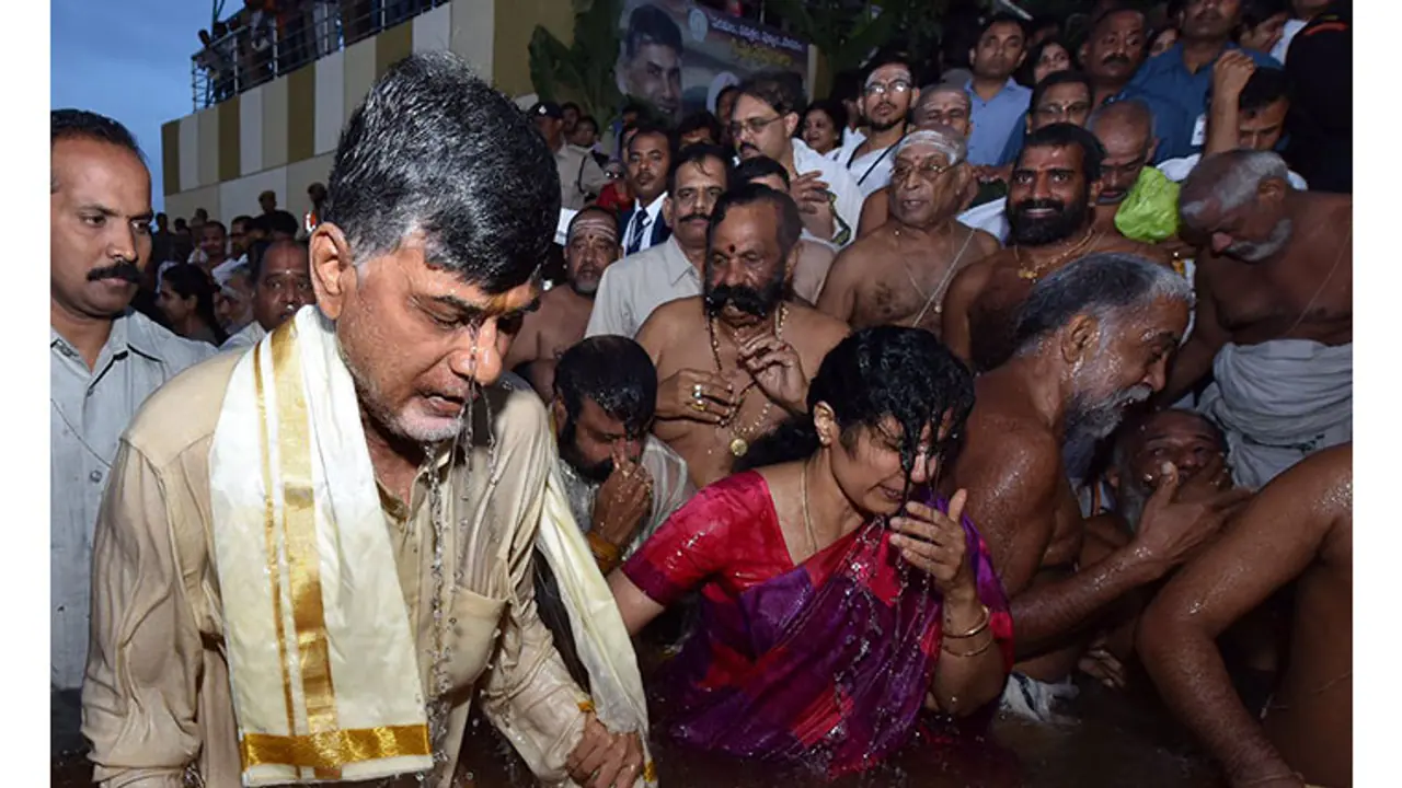 Roughly 40 lakh pilgrims will take a holy dip everyday in the two Telugu-speaking states during the 12-day event. The densest crowd is expected to be at Vijayawada, where an estimated 15 lakh pilgrims will converge daily. That is where even Naidu took a dip today with his family.