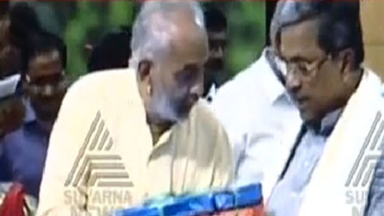 CM Siddaramaiah was spotted pushing away a set of gifts offered to him Silk Board Director Neela Manjunath had got some silk material as a gift for the Chief Minister, which he refused to recieve