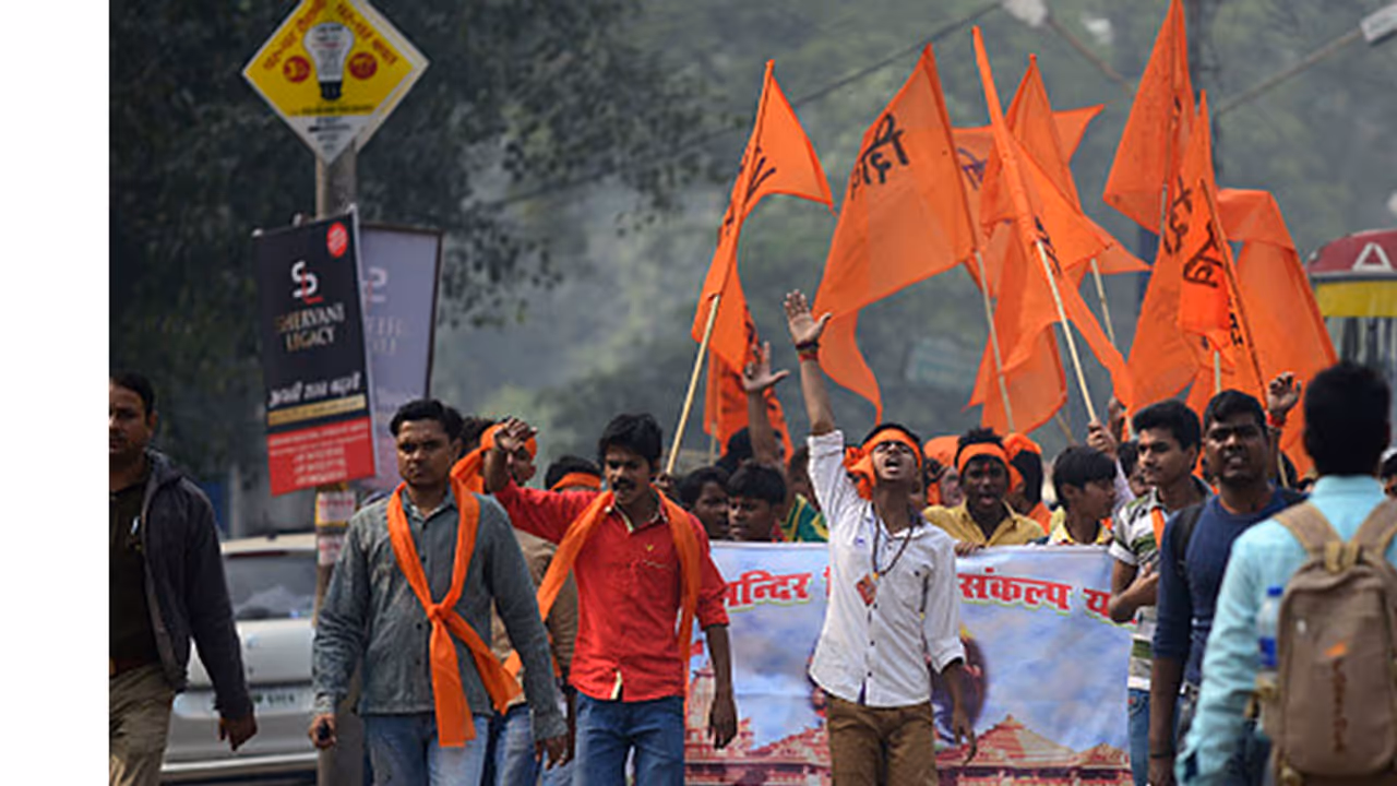 For the first time, Vijaywada, known for Left and gang-war politics, today turned saffron because of the protest rally by these organisations. The chant of 'Jai Sri Ram' filled the air.