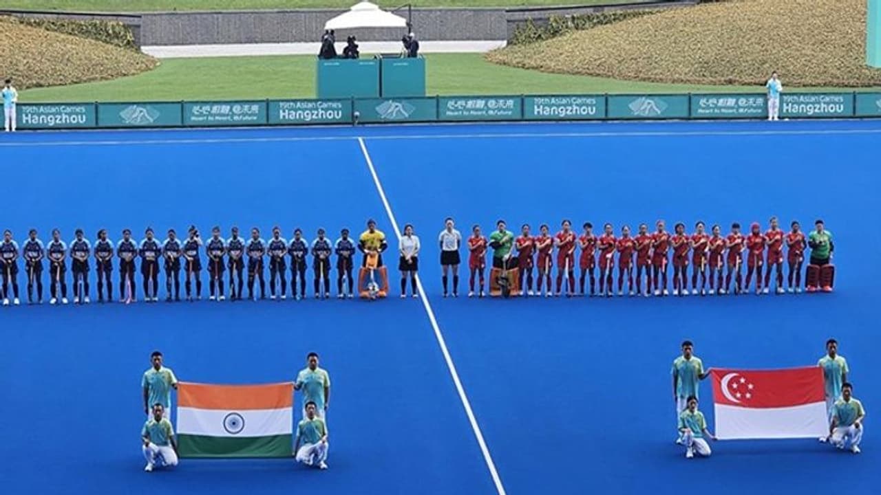 In a sensational display of skill and teamwork, Sangita delivered an impressive hat-trick as the Indian women's hockey team secured a resounding 13-0 victory over Singapore during their riveting clash at the Asian Games. The match between India and Singapore in the women's hockey competition was a thrilling encounter that kept fans on the edge of their seats throughout.