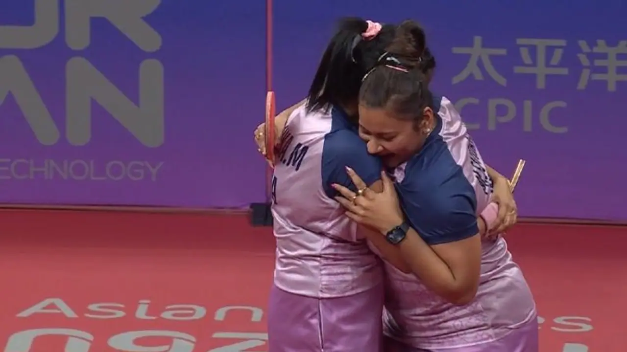 Sutirtha Mukherjee and Aihika Mukherjee caused a major upset by defeating world champion Chinese pair Chen Meng and Yidi Wang, securing a place in the women's doubles semifinals at the Asian Games.