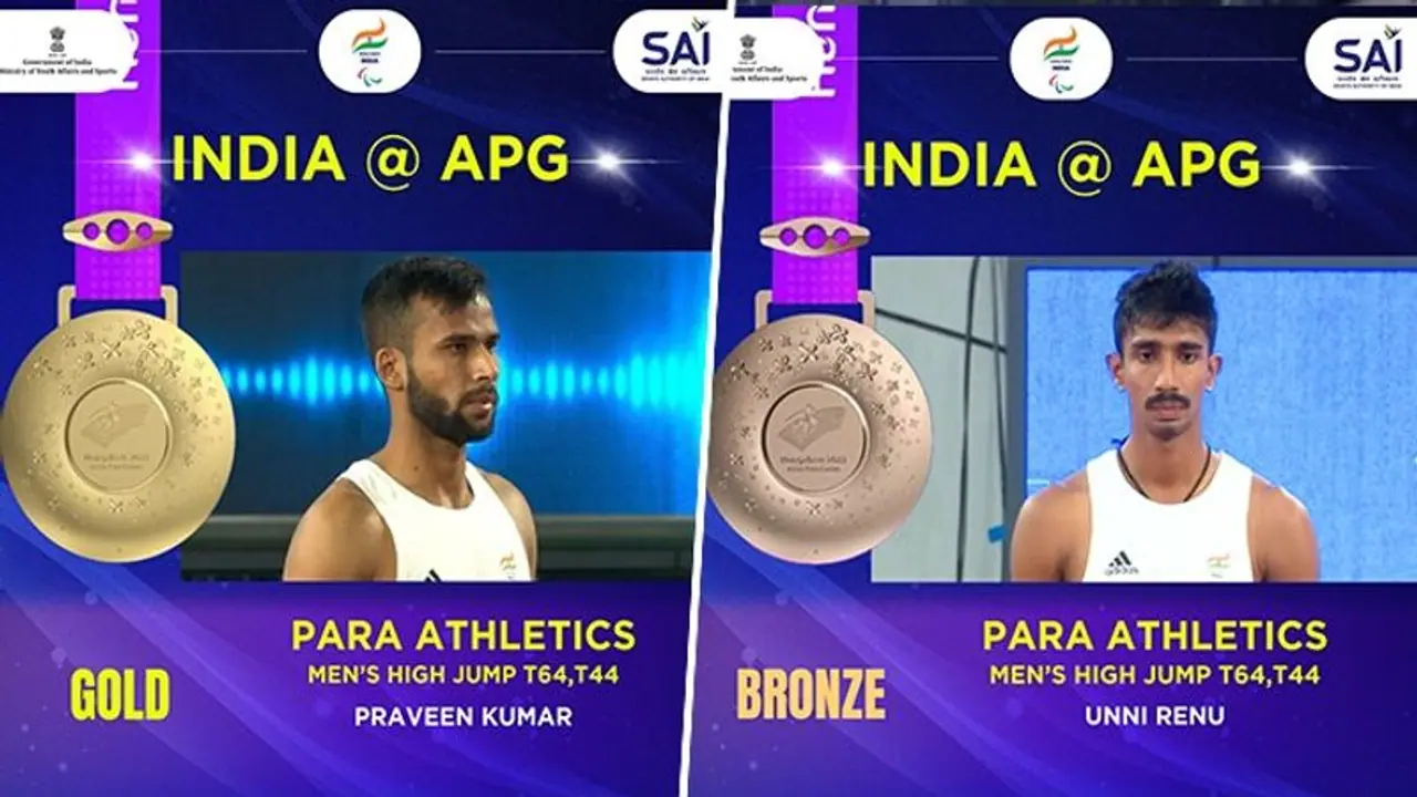 India's Praveen Kumar clinched a gold medal in Men's High Jump-T64 event at the ongoing Asian Para Games 2023, with best jump of 2.02m (Games Record), in Hangzhou, China, on Monday. Meanwhile, Unni Renu finished with a bronze medal-winning effort with his best jump of 1.95m. With Praveen's feat, India now have secured six gold medals at the competitive event.