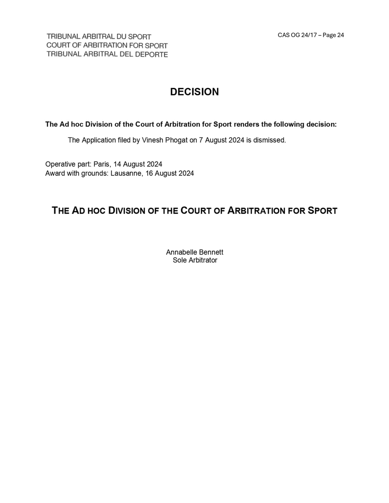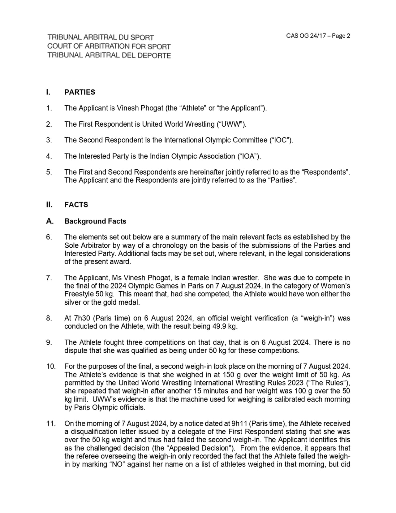 Here's a look at CAS' 24-page statement with regards to Vinesh Phogat case: