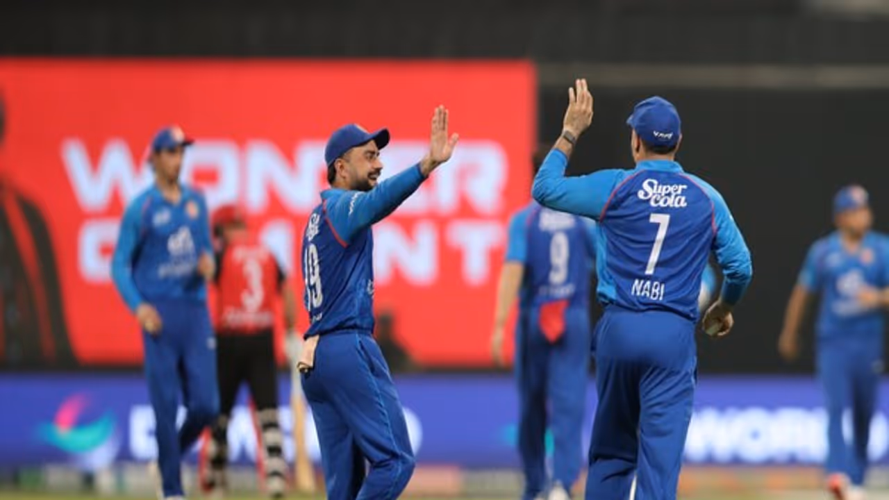 Naib (2/8) was fantastic for Afghanistan in his three-over spell, while Rashid, Noor and Omarzai got a wicket each.