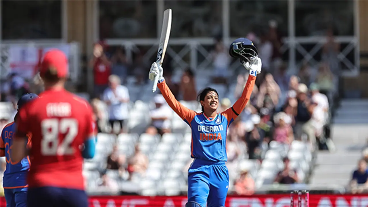 Smriti Mandhana became the first Indian woman cricketer to score centuries in all formats. Her 112 off 62 balls against England helped India reach 210/5 in the first T20I.