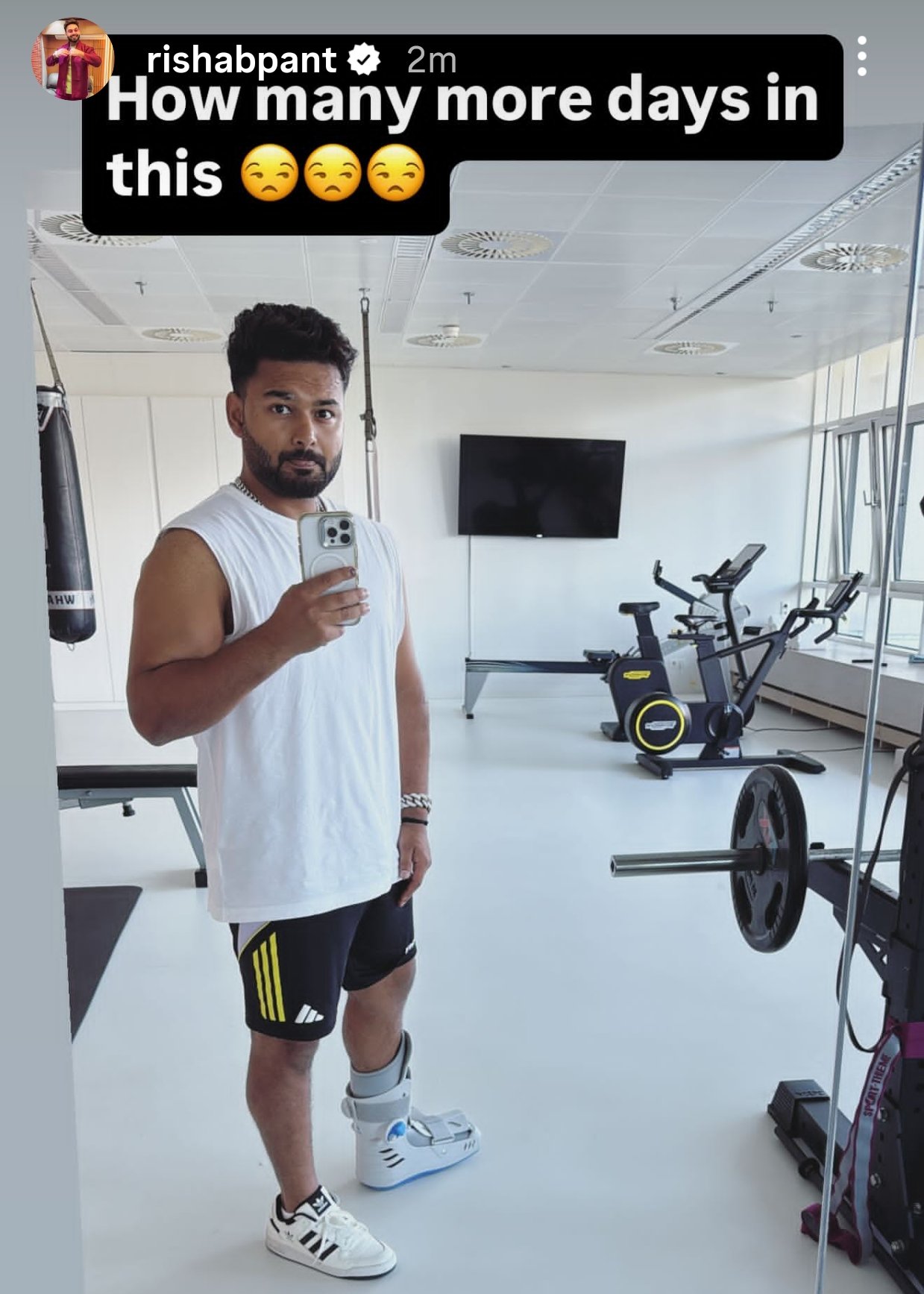 Taking to his Instagram story, Pant shared a picture of his mirror selfie with the cast on his injured toe, captioning it with ‘How many more days in this?’, giving fans a glimpse of his frustration and eagerness to make a comeback to competitive after being sidelined for over a month.