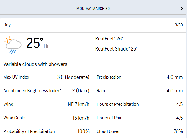 According to Accuweather, there is expected to be 25% chances of rain, with a humidity at 85%, and the cloud cover is likely to be at 66% in the evening, as the toss will take place at 7 pm, and the match is scheduled to start at 7:30 pm, with a possibility of intermittent showers that could briefly delay play, though conditions are expected to remain largely playable under overcast skies.