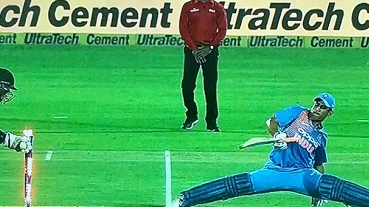 There is nothing that MS Dhoni can’t do Dhoni was all set to be stumped out after a wide ball from Mitchell Santner went to wicketkeeper Glenn Phillips’ hands when Dhoni was out of the crease However, Dhoni stretched his legs in the shape of a coat-hanger and reached the crease in the nick of time
