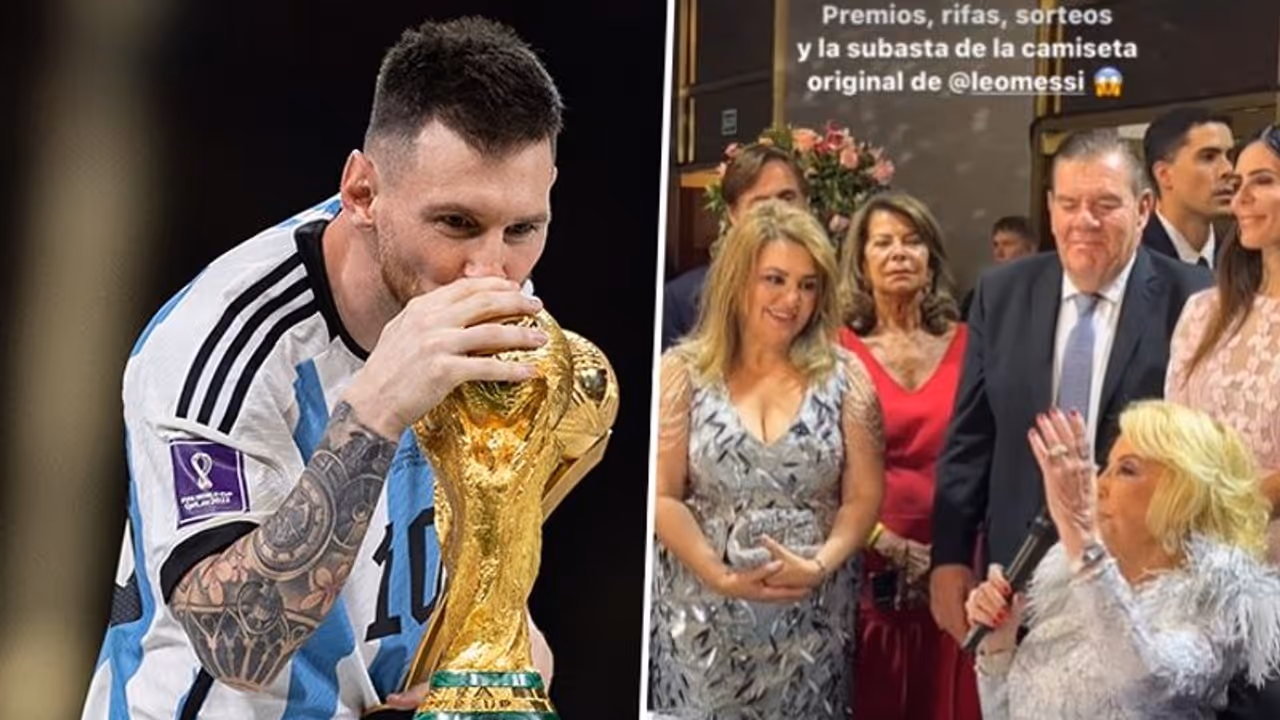 An autographed Argentina 10 jersey worn by Lionel Messi, donated by Mirtha Legrand, was auctioned for charity purpose on Monday.