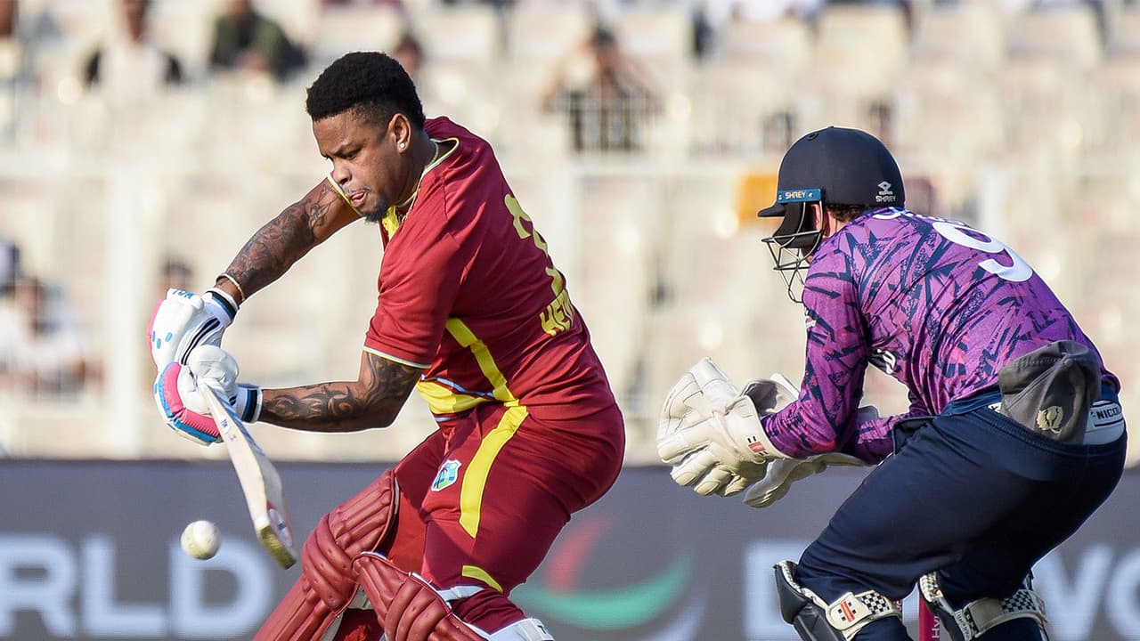 Shimron Hetmyer's blistering 64 and a stunning five-wicket haul, including a hat-trick, by Romario Shepherd guided West Indies to a comprehensive 35-run victory over Scotland in their T20 World Cup opener at Eden Gardens.