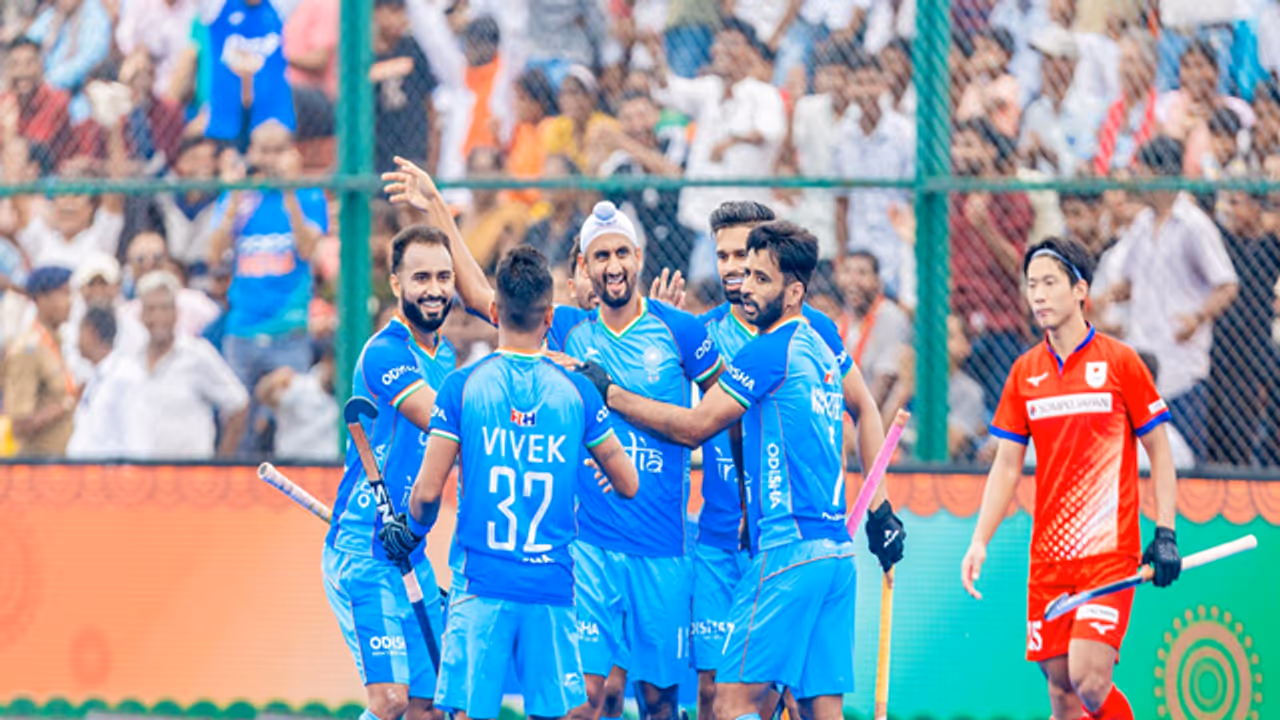 India sealed a 3-2 win over Japan in the Men’s Asia Cup 2025 at Rajgir, with skipper Harmanpreet Singh scoring twice and Mandeep Singh adding one. The victory secured India’s place in the Super 4s as goalkeeper Krishan Pathak marked his 150th game.