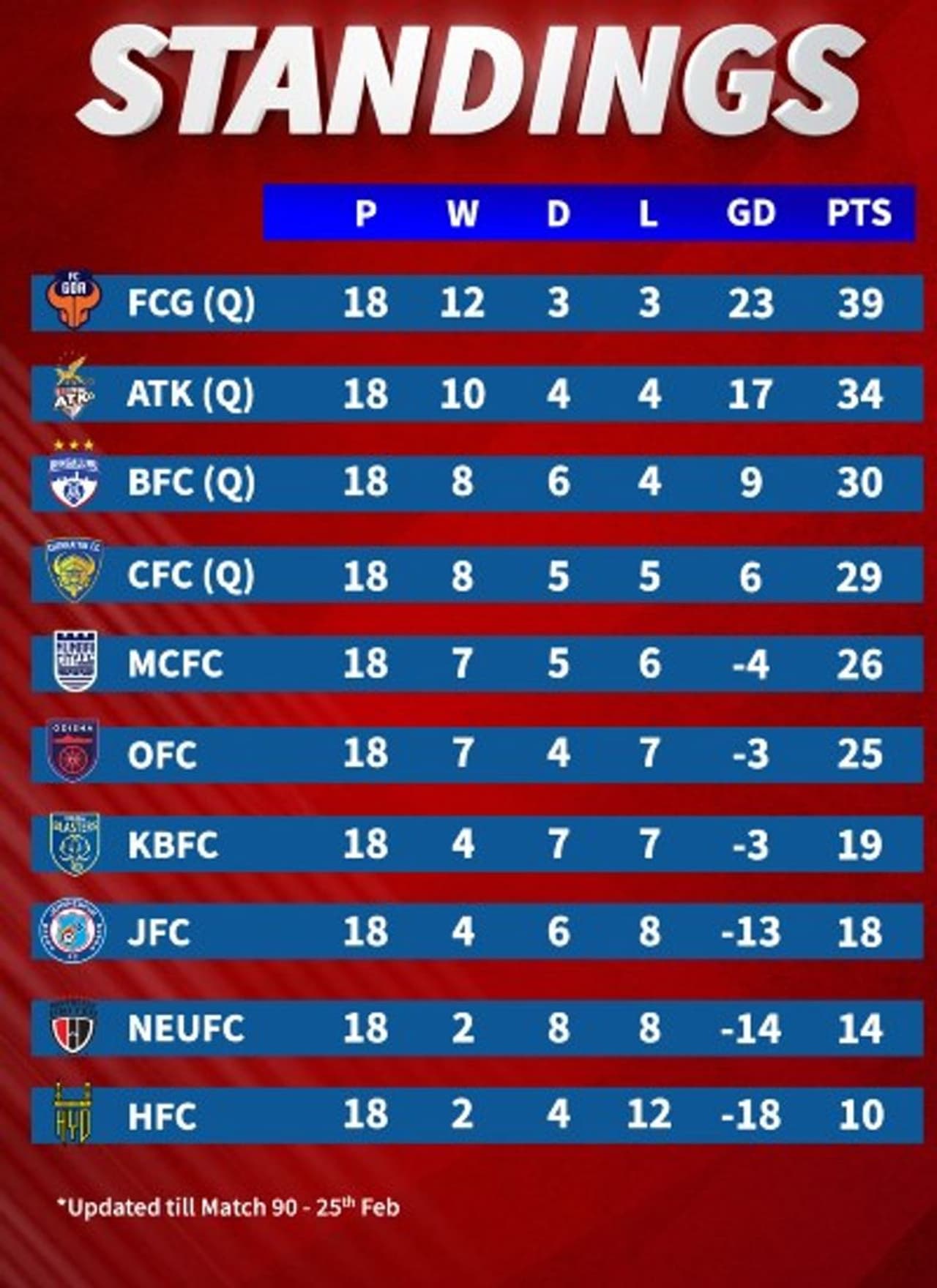NorthEast finished their season on the ninth spot with 14 points. Chennaiyin, on the other hand, finish fourth with 29 points and will now take on FC Goa in the playoffs. The other playoff will feature Bengaluru FC and ATK.