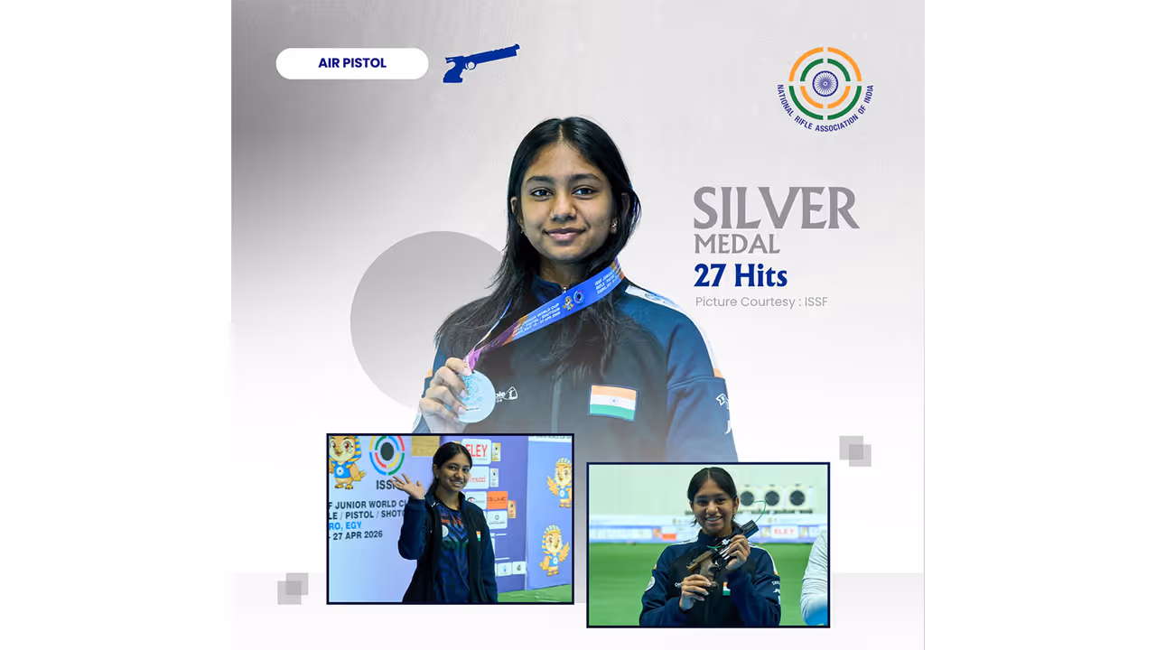 India's young shooting contingent delivered another impressive performance at the ISSF Junior World Cup 2026, clinching four medals on Wednesday to take their overall tally to seven. Leading the charge was Sejal Kamble, who secured a silver medal in the women's 25m pistol event. Kamble shot 27 in the final, finishing behind neutral athlete Katsiaryna Ivanova, who claimed gold, while Sofiia Smetankina took bronze. Kamble had earlier dominated the qualification round, topping the standings with a score of 580, according to Olympics.com.