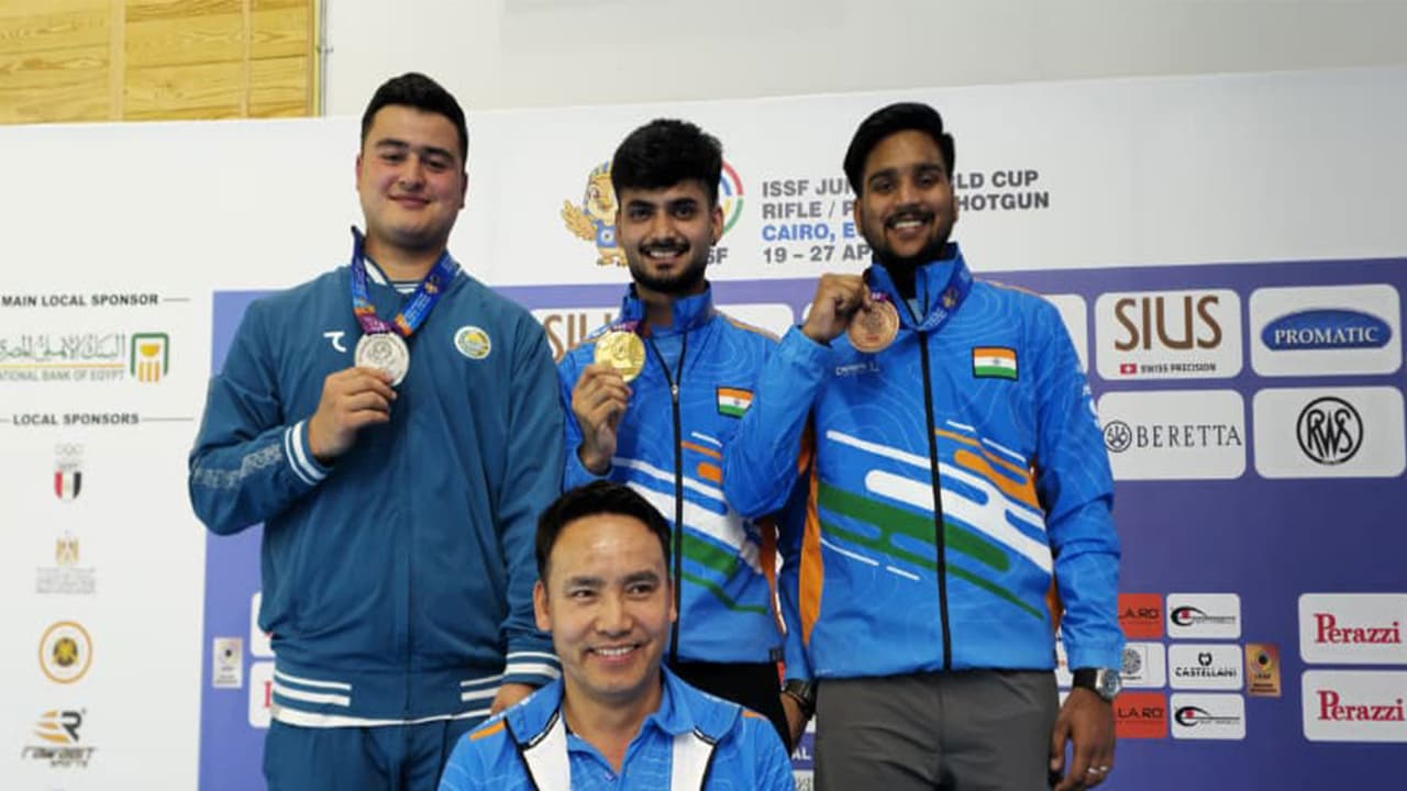 Former Mixed Team World Champion Shiva Narwal marked his return after a three-year gap to claim gold in the 10m Air Pistol Men's Junior event on Day One of competitions in the ISSF Junior World Cup Rifle/Pistol/Shotgun on Tuesday at the Egypt International Olympic City. According to a release, Chirag Sharma accompanied Narwal on the podium by securing bronze, while Panaah Bhugra added a silver in the women's 10m air rifle.