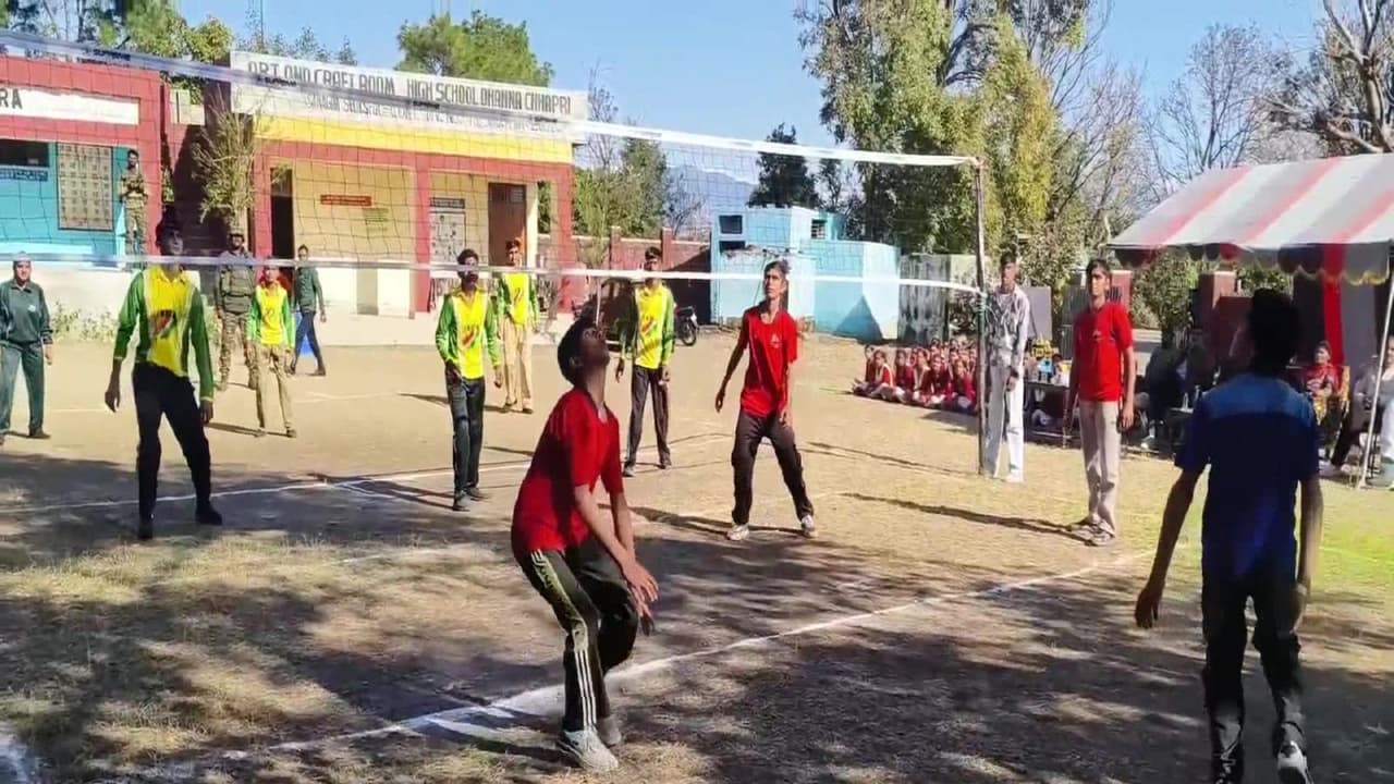 A volleyball match was held at a school in Akhnoor, J&K, under the Khelo India initiative, with support from the Indian Army's Operation Sadhbhavana. The event aimed to promote sports, teamwork, and physical well-being among students.