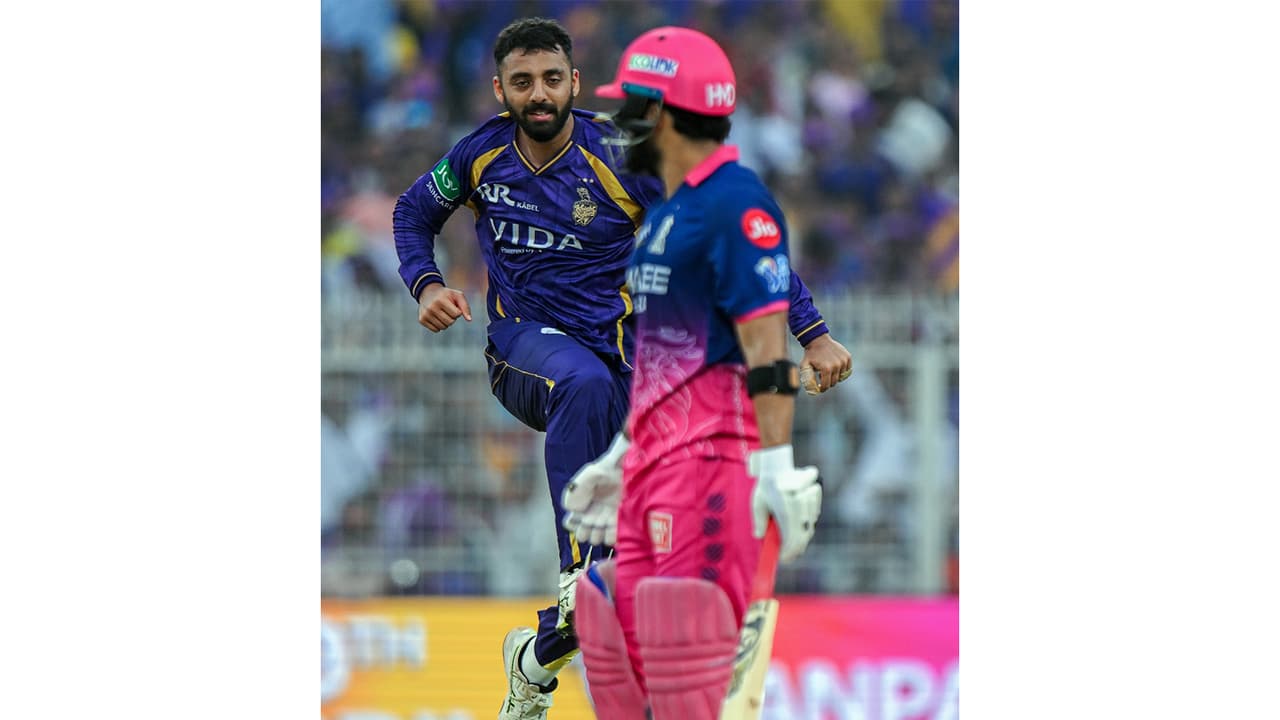 After a fine bowling display by KKR, powered by three-fers from Varun (3/14) and Kartik Tyagi (3/22), RR could only reach 155/9, despite an 81-run stand between Vaibhav Sooryavanshi (46 in 28 balls, with six fours and two sixes) and Yashasvi Jaiswal (39 in 29 balls, with four boundaries and two sixes).