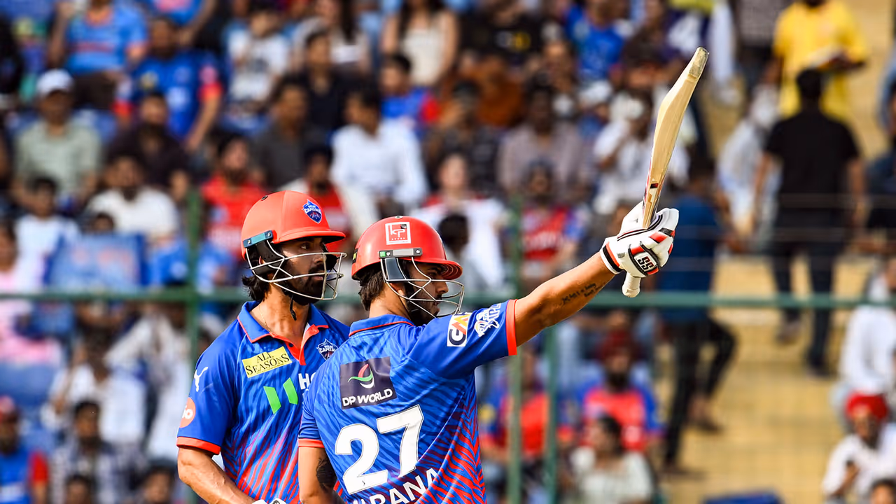 KL Rahul hit a record-breaking 152* and Nitish Rana scored 91, powering Delhi Capitals to 264/2 against Punjab Kings. Their 220-run stand is the second-highest in IPL history. Rahul's knock is the highest by an Indian in the IPL.