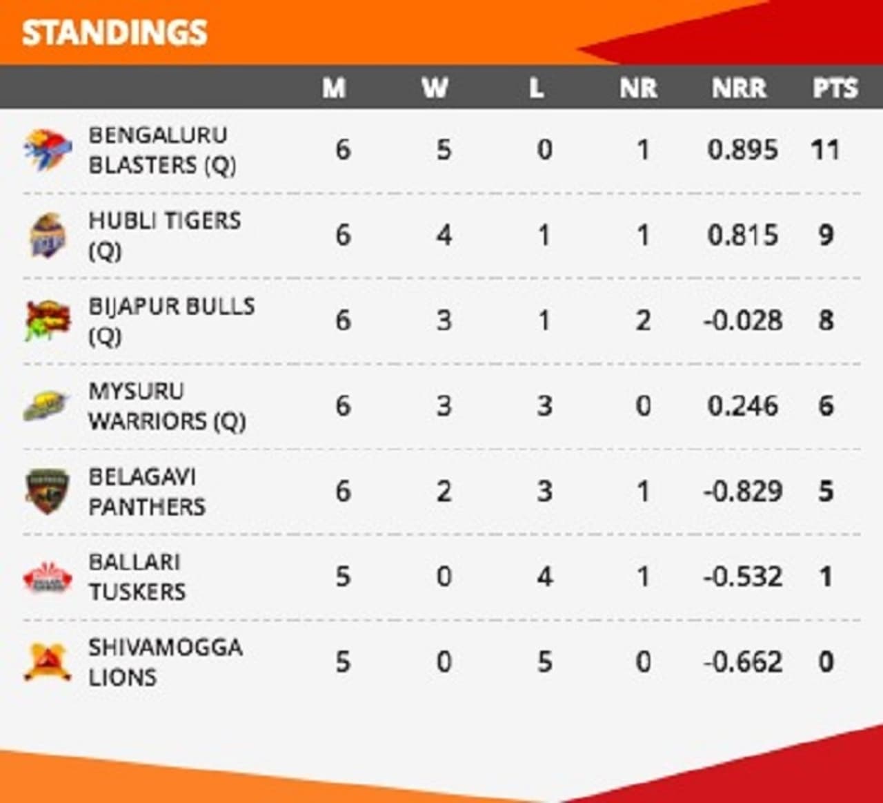 League toppers Bengaluru will once again take on Mysuru in the first semifinal on Tuesday while second-placed Hubli Tigers will meet Bijapur Bulls, who finished third, in the second semifinal on Wednesday