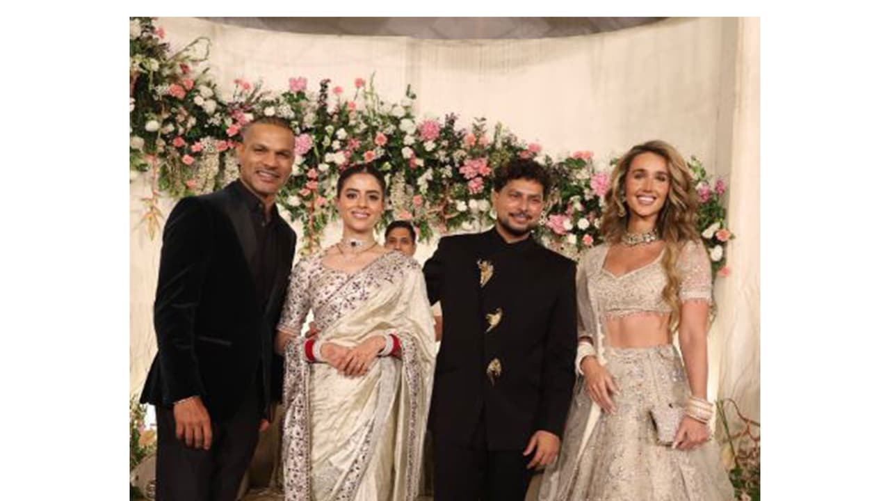Former Indian cricketer Shikhar Dhawan and his wife Sophie attended the wedding reception of Indian cricketer Kuldeep Yadav and Vanshika in Lucknow on Tuesday. In a post on Instagram, Shikhar Dhawan uploaded pictures from Kuldeep's reception and congratulated the Indian spinner and his wife, Vanshika. "Congratulations to the beautiful couple @kuldeep_18 & Vanshika. Wishing you both a lifetime of love and happiness," reads the caption of Shikhar Dhawan's post.