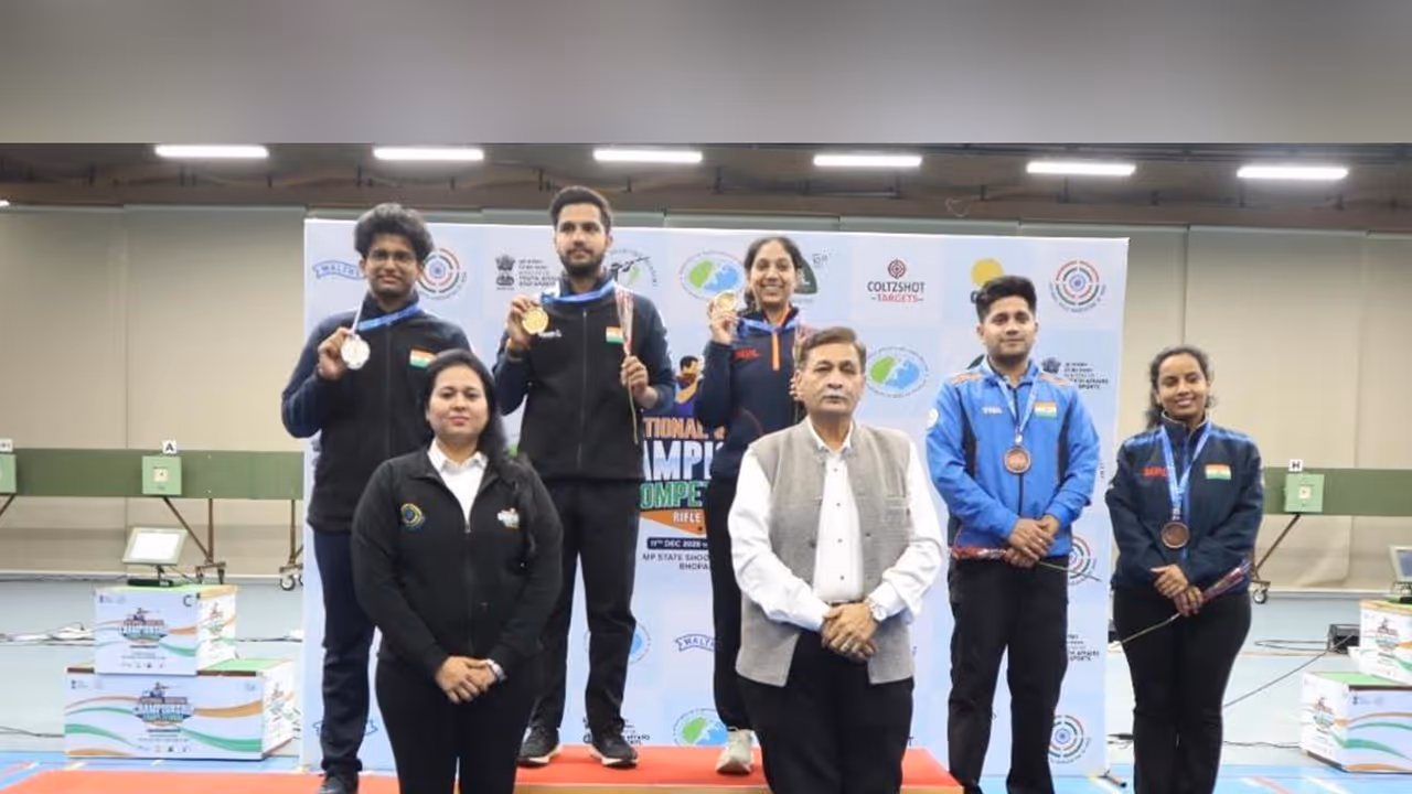 Haryana's pairing of Ramita Jindal and Himanshu Dhillon displayed a dominant performance to claim the 10m air rifle mixed team gold medal at the 68th National Shooting Championship Competitions at the Madhya Pradesh State Shooting Academy on Tuesday. The duo defeated Maharashtra's Arya Borse and Parth Mane 16-12 in the gold medal match to secure the title, extending Himanshu's fine run after he set a new national record and junior national record of 634.5 in the men's 10m air rifle event on the previous day, as per a press release from the National Rifle Association of India (NRAI).