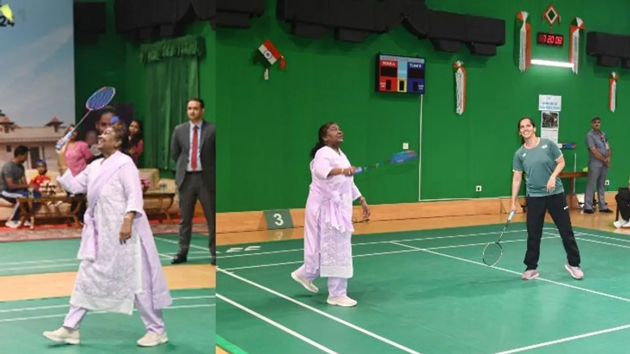 President Droupadi Murmu demonstrated her passion for sports by playing a friendly match with London Olympic Bronze medalist Saina Nehwal at the Badminton Court in Rashtrapati Bhavan. The game was intended to showcase India's burgeoning prowess in badminton, particularly with the significant achievements of female players globally.