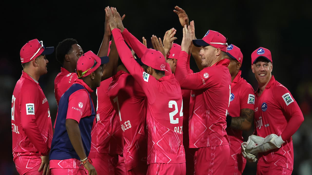 The visitors were under pressure from the outset, with Pretorius and Asa Tribe dominating the Powerplay. The Royals' opening pair put on exactly 100 in 10.4 overs before MI Cape Town captain Rashid Khan (2/31) had the Jersey international caught for 51 off 34 balls.