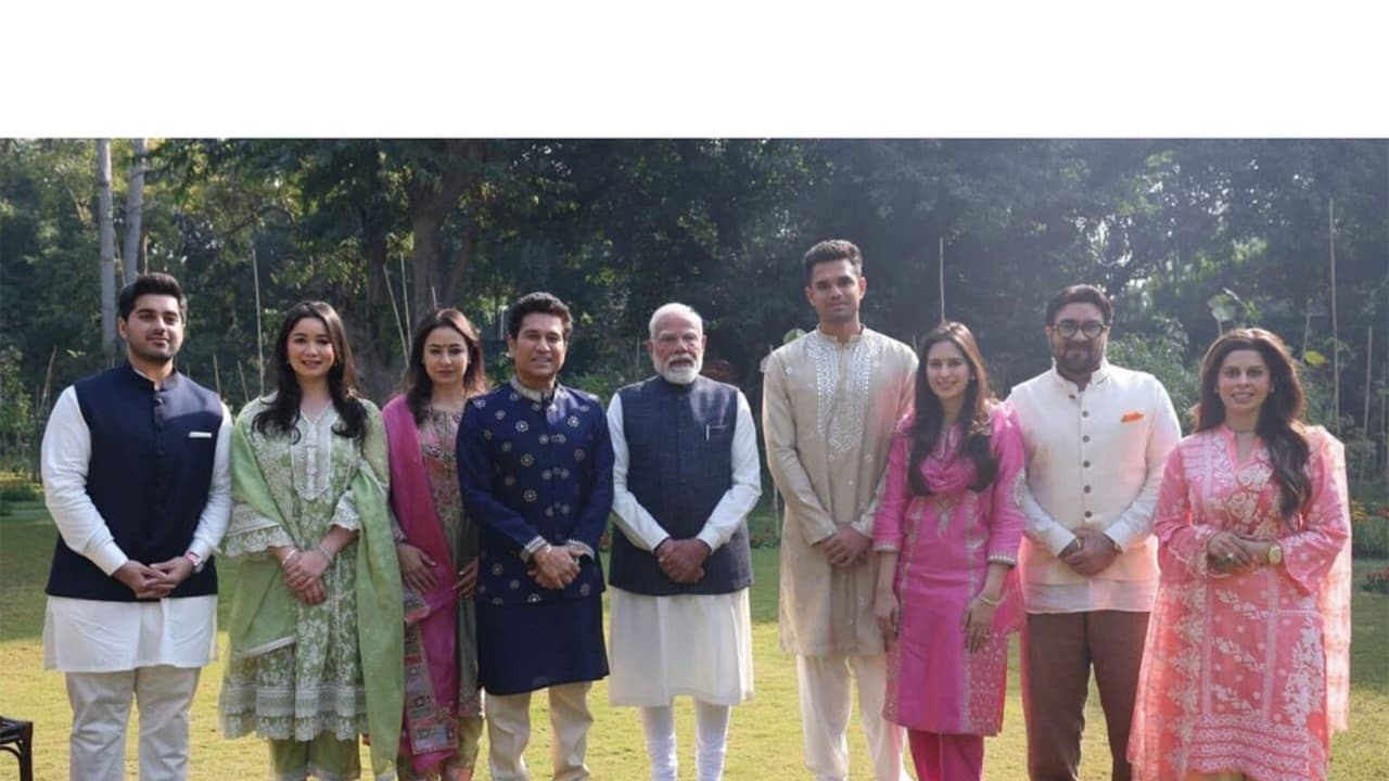 Former India cricketer Sachin Tendulkar met with Prime Minister Narendra Modi at his residence on Tuesday and invited him for the wedding of his son Arjun Tendulkar and Saaniya Chandok. The duo got engaged in August last year. Sharing the news on X, Tendulkar wrote, "We were honoured to invite Hon'ble Prime Minister Shri @narendramodi ji to Arjun and Saaniya's wedding. Thank you, Modi ji, for your blessings and thoughtful advice for the young couple."