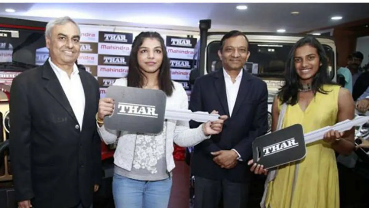 PV Sindhu was gifted a silver-coloured Mahindra Thar, which represented her silver medal winning performance, while Sakshi Malik was given a red-coloured Thar with a bronze grille up-front.