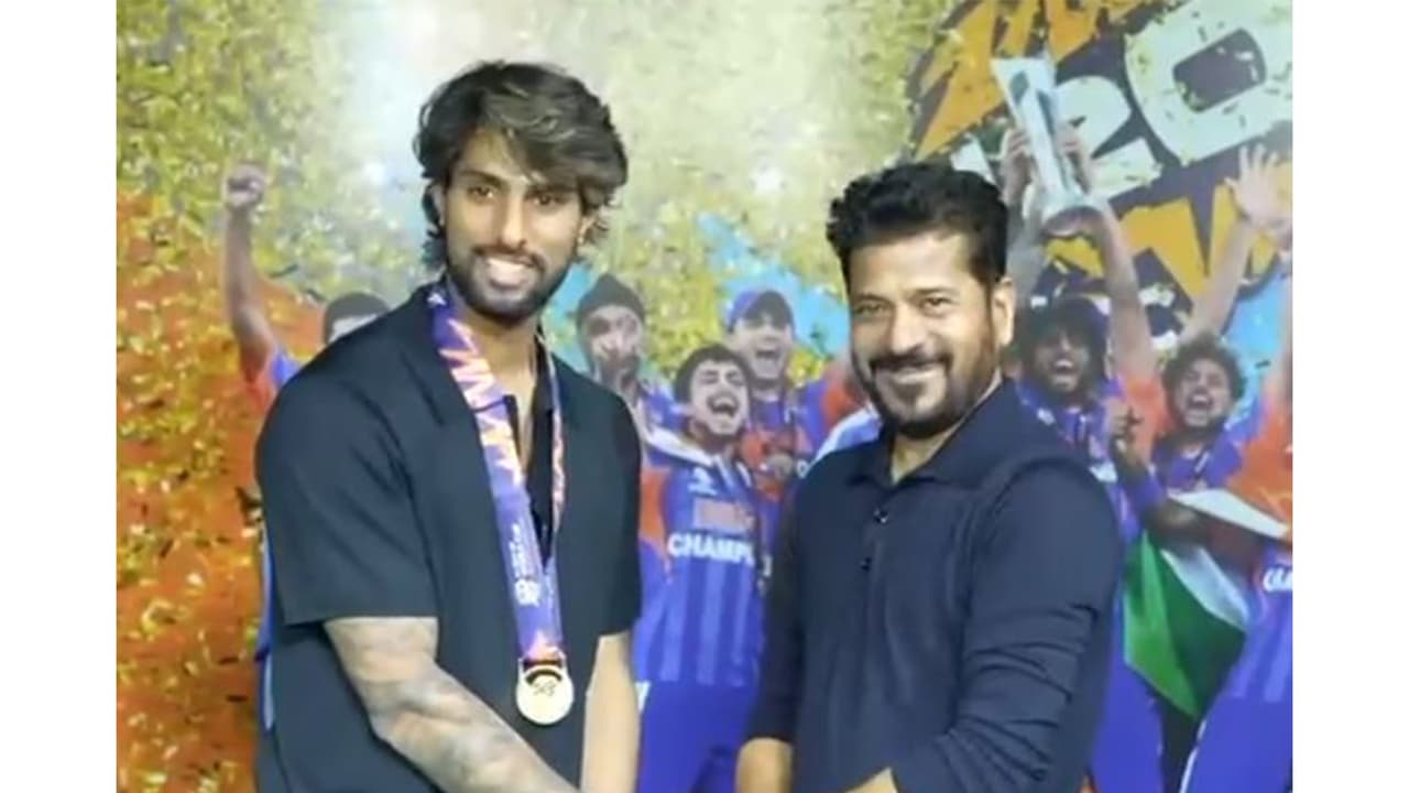 Telangana CM Revanth Reddy felicitated cricketer Tilak Varma following India's historic triumph in the T20 World Cup. India secured back-to-back titles by defeating New Zealand, with Varma scoring 207 runs in the tournament.