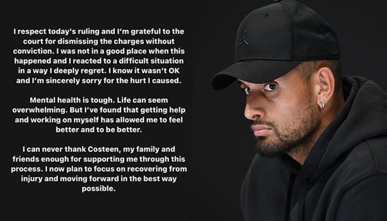Kyrgios issued a statement on Instagram following the hearing: "I respect today's ruling and I'm grateful to the court for dismissing the charges without conviction."
