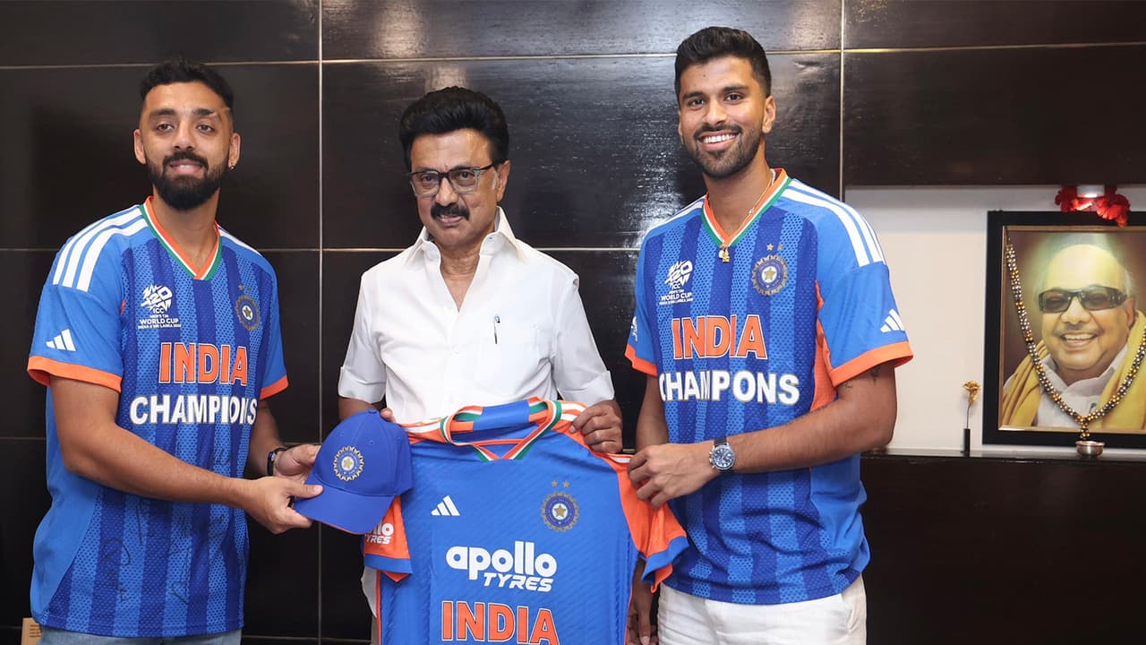 Tamil Nadu Chief Minister MK Stalin met Indian cricketers Washington Sundar and Varun Chakaravarthy following the Men in Blue's ICC Men's T20 World Cup 2026 win and extended his best wishes to both players for the future.