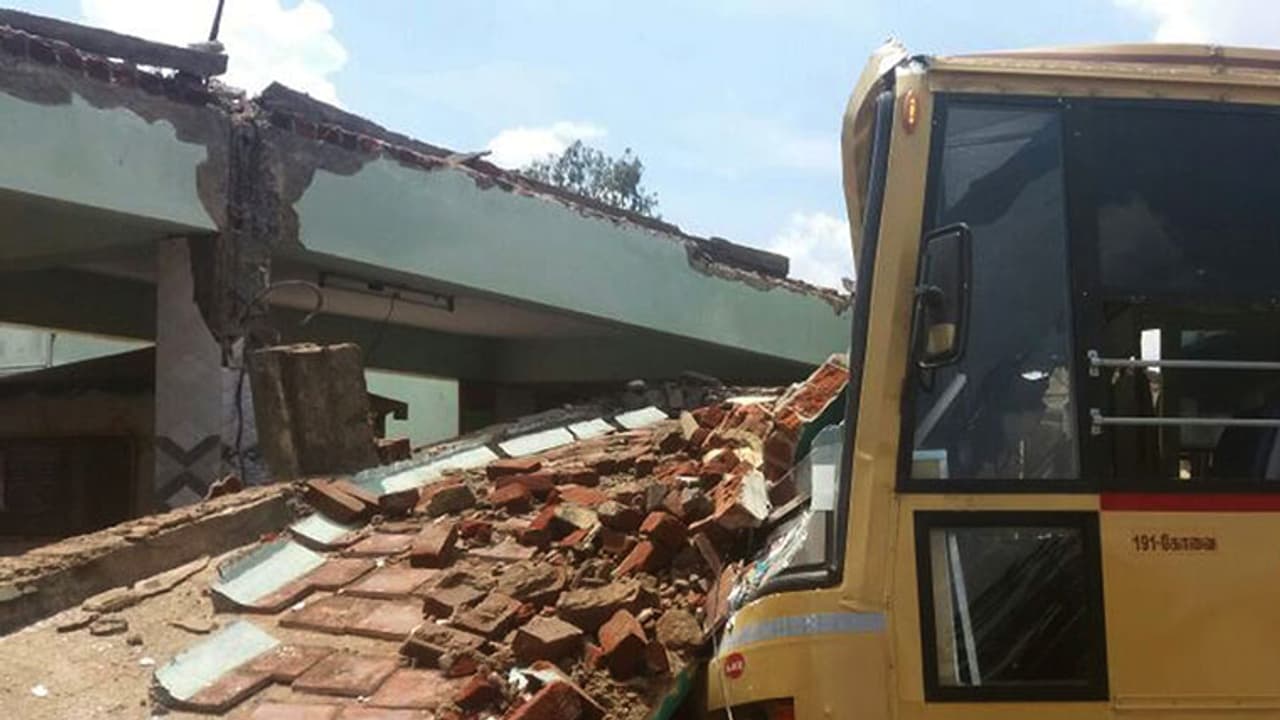 According to rural police the roof of the shed at the bus stand suddenly collapsed on commuters. The roof had apparently become weak after the rains.