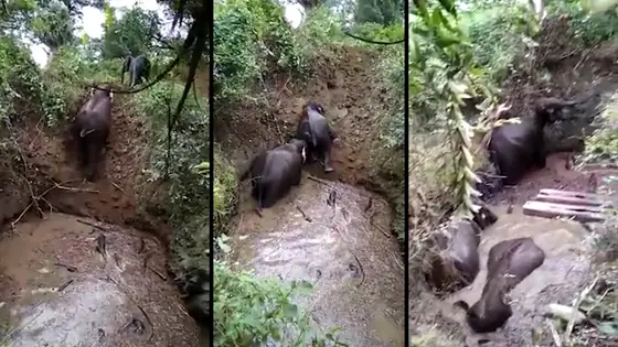 Three elephants fell into a pond dug for agriculture purposes at Kanakundur village bordering Chamarajanagar and Tamil Nadu near Sathyamangala forests. As the three jumbos were walking in the forest land, there was a mudslide due to heavy rains and the elephants fell into the pond, which was quite deep. The elephants tried hard to make their way out but failed and started screaming for help. The residents of the village rushed to the spot and informed forest officials, who launched a rescue operation. All three elephants were extricated and let into the forest safely. Watch the heart-wrenching video here.