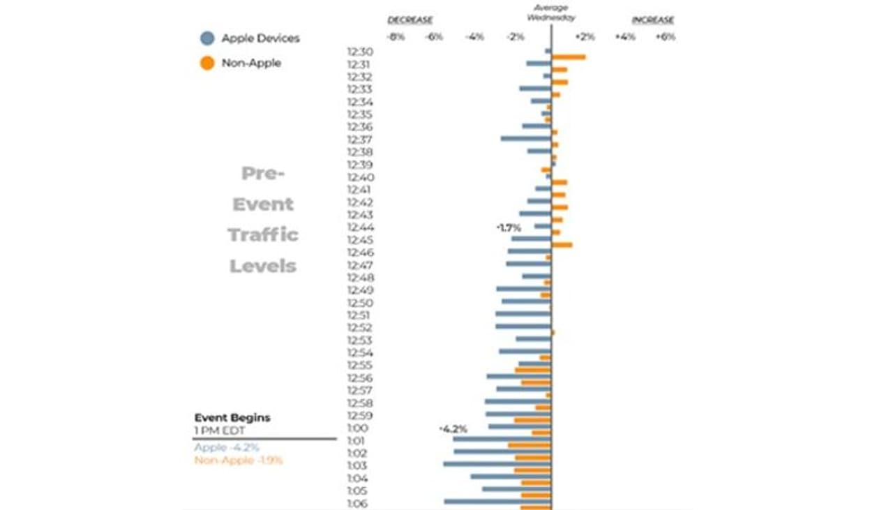 During the "Far Out" event on Wednesday, both iPhone and Android users felt motivated to leave the porn website to check what was happening with the release of the newest technology. At least 7.4% of Apple device users left Pornhub to check them out, which was the largest drop of the event for the porn giant.