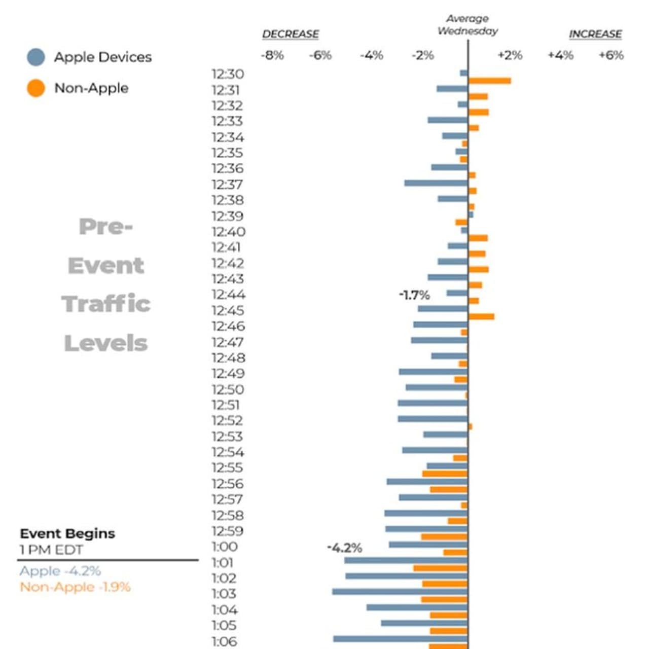 This is not unusual because Pornhub has been monitoring Apple events for a long time to gauge how well its traffic performs. According to the data, website visits start to decline as soon as the event begins. The iPhone 14 event this year followed the same format. Here's the data collected by the pornhub.