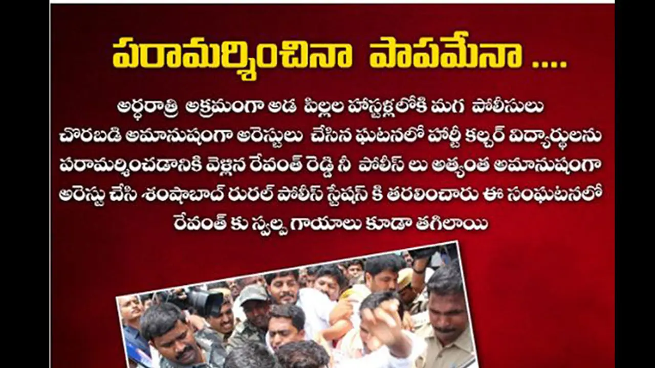 “It is really sad that police forcefully arrested the students at midnight when they were peacefully participating in the agitation,” Revanth said.