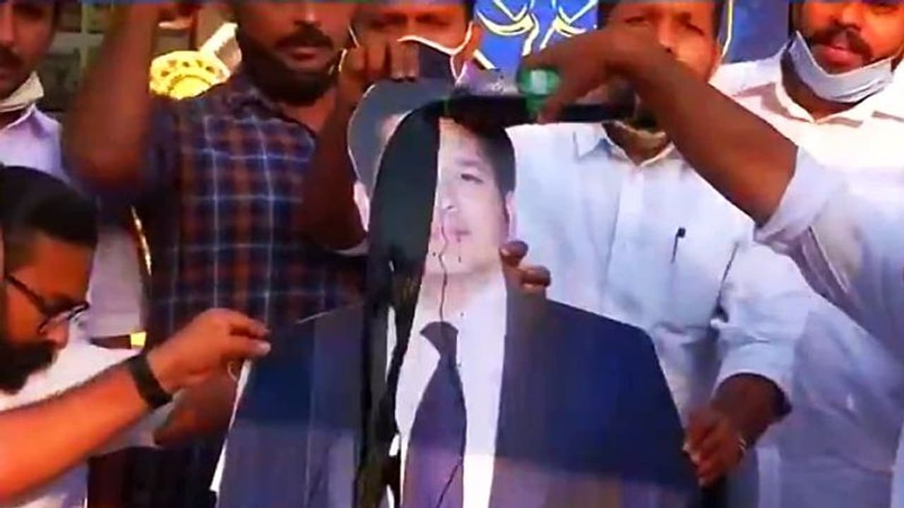 Members of Indian Youth Congress in Kerala staged protests against Indian cricket legend Sachin Tendulkar for taking a stand against international celebrities who tweeted in support of farmers protests following the now-under investigation 'Toolkit'.