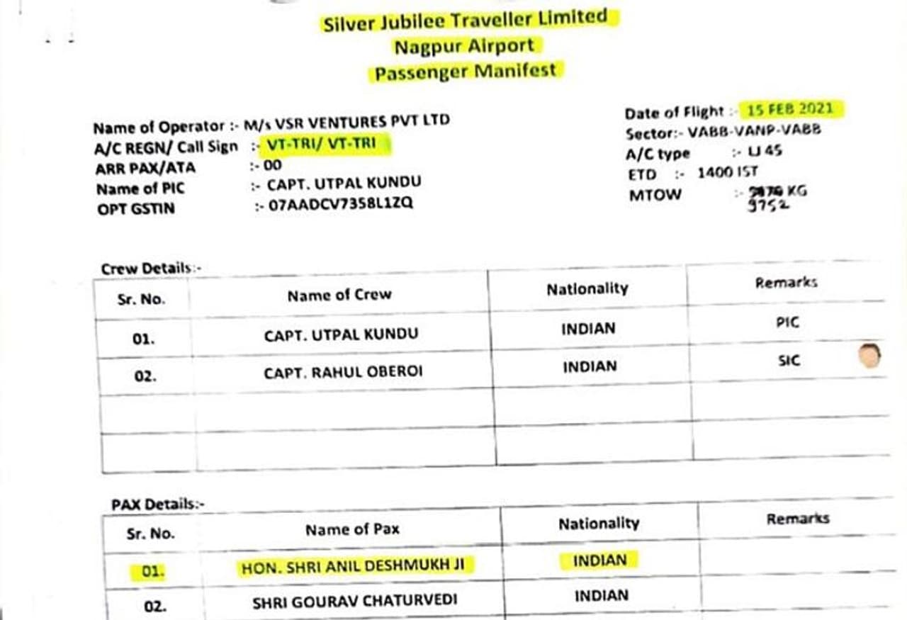 After the flight manifest story emerged, Deskhmukh on Tuesday morning issued another video statement, admitting that he did take a private aircraft to fly back to Mumbai on February 15 night.