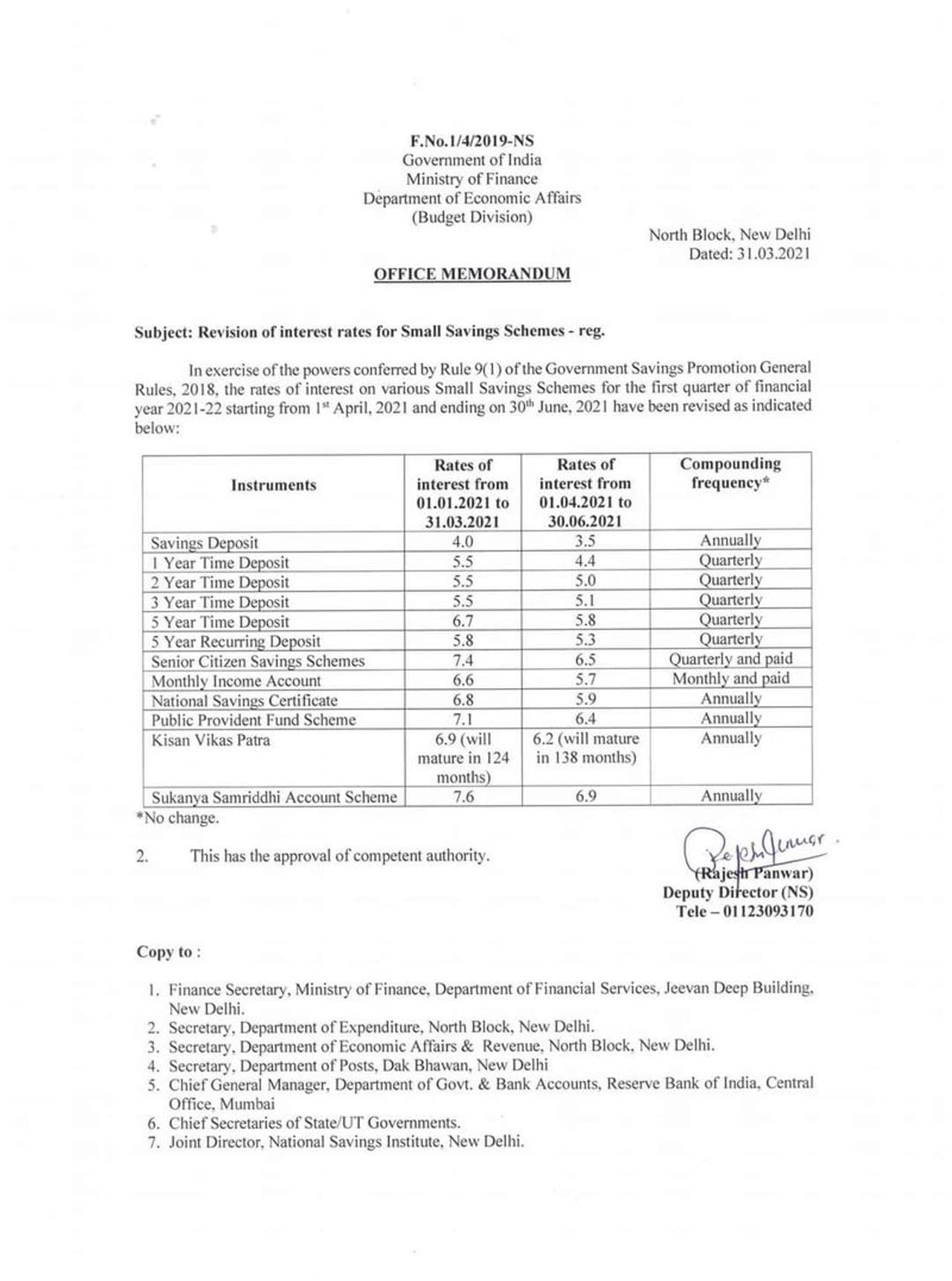 The interest rate for the five-year Senior Citizens Savings Scheme, which is paid quarterly, was also been reduced steeply by 0.9 per cent to 6.5 per cent.