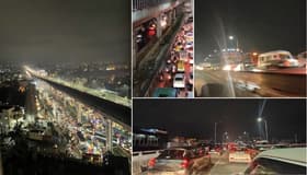 Heavy rains in Bengaluru caused a massive traffic jam on the Electronic City flyover, leaving commuters stranded for hours. Waterlogging at key points led to a three-hour gridlock. Frustrated tech employees abandoned cabs, walking home, while netizens expressed outrage on social media.