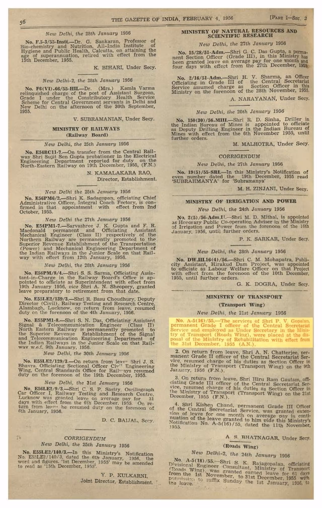 PV Gopalan was a senior and respected government officer who served in various positions, a government official told the news agency PTI.