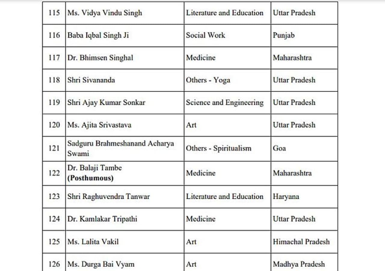 This year, late General Bipin Rawat, former Uttar Pradesh chief minister Kalyan Singh and RadheyShyam Khemka have been awarded Padma Vibhushan (posthumously).