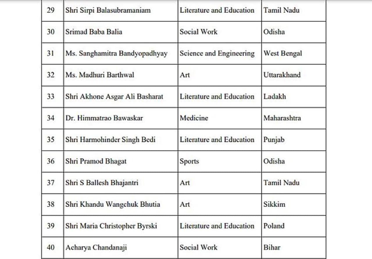 Ahead of 73rd Republic Day, the Indian government released the list of Padma Awards -- one of the highest civilian awards of the country, in three categories -- Padma Vibhushan, Padma Bhushan and Padma Shri.