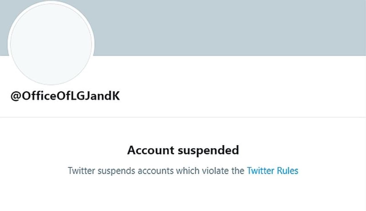 According to J&K administration sources, the Lieutenant Governor's account, which had over 52,000 followers, was possibly suspended due to a technical error from Twitter.