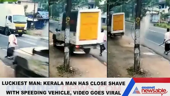 Viral video: Man miraculously escapes accident by a whisker in Kerala