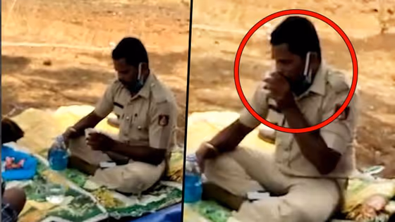 The cop, identified as Chavan, is seen helping himself to some snacks on the side as well