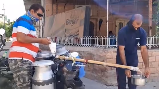 Jodhpur: An effort of Rajasthan's Jodhpur resident Sanjay Goyal is going viral on social media and this is due to his invention of the milk gun. You might be wondering what is a milk gun? Well, Sanjay has created a milk gun to sell milk adhering to maintain the social distancing norm. A long pipe has been attached to his bike and he uses it to deliver milk at every customer's doorstep. This product helps him deliver milk efficiently without having any contact with others. Residents have hailed his efforts to keep deadly coronavirus at bay. Take a look at how he delivers milk.