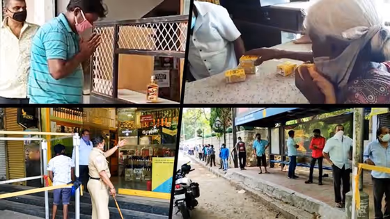 After nearly 40 days of no sale at liquor stores due to the lockdown, people lined up at various liquor stores to stock up on alcohol needs. From offering poojas to bursting crackers, people displayed joy.