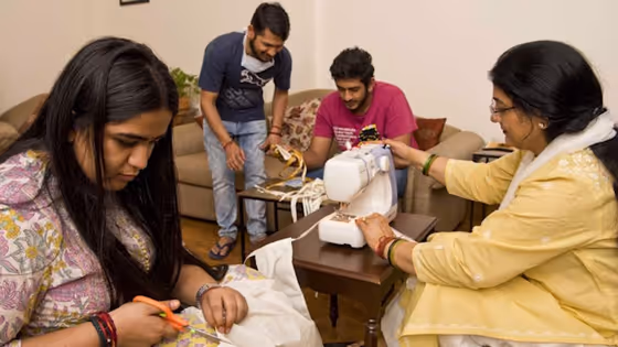 Union minister Gajendra Singh Shekhawat's wife stitches masks in Delhi