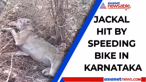 The incident happened yesterday at Kanakagiri forest area in Karnataka when a biker taking a turn at Kittur Rani Chennama Circle hit the jackal as he failed to notice the animal crossing the road.